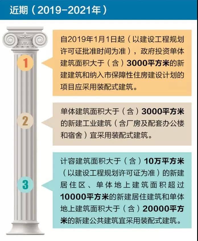 近年來,黨中央、國(guó)務(wù)院和省委、省政府以及市委、市政府高度重視發(fā)展裝配式建筑。裝配式建筑的規(guī)劃自2015年以來密集出臺(tái),2015年末,住建部發(fā)布了《工業(yè)化建筑評(píng)價(jià)標(biāo)準(zhǔn)》;2016年2月,國(guó)務(wù)院印發(fā)了《中共中央 國(guó)務(wù)院關(guān)于進(jìn)一步加強(qiáng)城市規(guī)劃建設(shè)管理工作的若干意見》,明確提出:大力推廣裝配式建筑,建設(shè)國(guó)家級(jí)裝配式建筑生產(chǎn)基地。加大政策支持力度,力爭(zhēng)用10年左右時(shí)間,使裝配式建筑占新建建筑的比例達(dá)到30%;2016年9月27日國(guó)務(wù)院出臺(tái)《關(guān)于大力發(fā)展裝配式建筑的指導(dǎo)意見》(國(guó)辦發(fā)﹝2016﹞71號(hào)),對(duì)大力發(fā)展裝配式建筑和鋼結(jié)構(gòu)重點(diǎn)區(qū)域、未來裝配式建筑占比新建筑目標(biāo)、重點(diǎn)發(fā)展城市進(jìn)行了明確,該意見再次提出力爭(zhēng)用10年左右時(shí)間,使裝配式建筑占新建建筑的比例達(dá)到30%;2017年4月,廣東省人民政府辦公廳印發(fā)了《廣東省人民政府辦公廳關(guān)于大力發(fā)展裝配式建筑的實(shí)施意見》(粵府辦﹝2017﹞28號(hào))更加進(jìn)一步細(xì)化了廣東省裝配式發(fā)展的要求。我市處于珠三角城市群列,是重點(diǎn)推進(jìn)地區(qū),要求到2020年年底前,裝配式建筑占新建建筑面積比例達(dá)到15%以上。到2025年年底前,裝配式建筑占新建建筑面積比例達(dá)到35%以上;2017年12月,住建部發(fā)布了《裝配式建筑評(píng)價(jià)標(biāo)準(zhǔn)》,進(jìn)一步規(guī)范了裝配式建筑的評(píng)價(jià)。