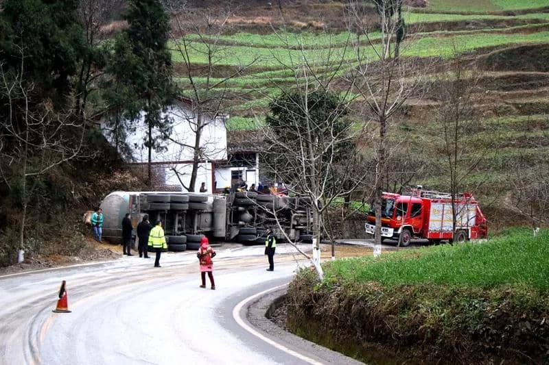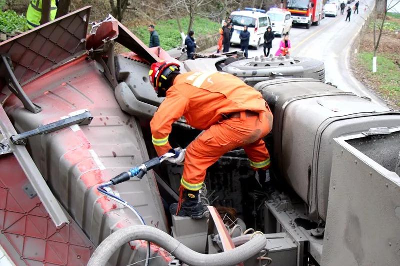 到達(dá)現(xiàn)場后,經(jīng)詢問現(xiàn)場交警得知,該水泥罐車車牌號為魯H7G019,載有30噸左右的水泥,由青川縣姚渡鎮(zhèn)方向往青川縣沙洲鎮(zhèn)方向行駛,在行駛過程中因彎道急,車輛速度較快導(dǎo)致車輛側(cè)翻。隨后,經(jīng)偵察發(fā)現(xiàn)該水泥罐車車側(cè)翻于路邊,車頭嚴(yán)重變形,駕駛室有2人被困,經(jīng)120醫(yī)務(wù)人員確認(rèn)均無生命跡象。