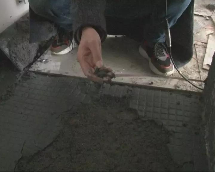 泥水匠 周師傅:拱起來(lái)里面就空了,貼了當(dāng)時(shí)沒(méi)看出來(lái),等了一段時(shí)間就自動(dòng)拱起來(lái)了,水泥明顯有質(zhì)量問(wèn)題,用別的牌子的水泥就沒(méi)有問(wèn)題。