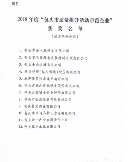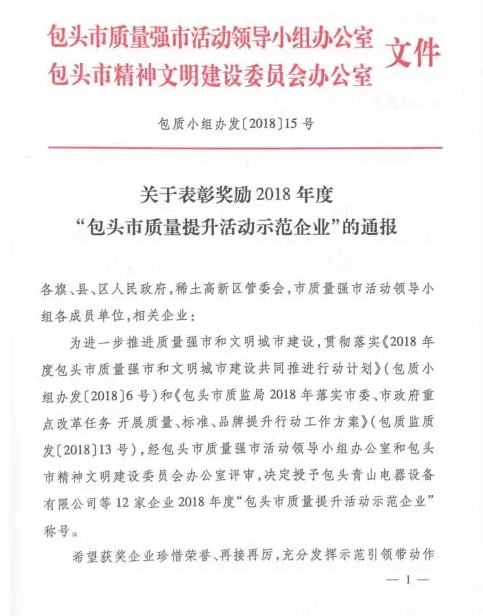 據(jù)悉,2018年度“包頭市質(zhì)量提升活動示范企業(yè)”評比工作,是進(jìn)一步推進(jìn)質(zhì)量強(qiáng)市和文明城市建設(shè),實現(xiàn)企業(yè)質(zhì)量管理能力突破性提升的重要一環(huán)。經(jīng)考核,金隅冀東水泥包頭公司被授予2018年度“包頭市質(zhì)量提升活動示范企業(yè)”榮譽,全市僅12家單位獲此殊榮。