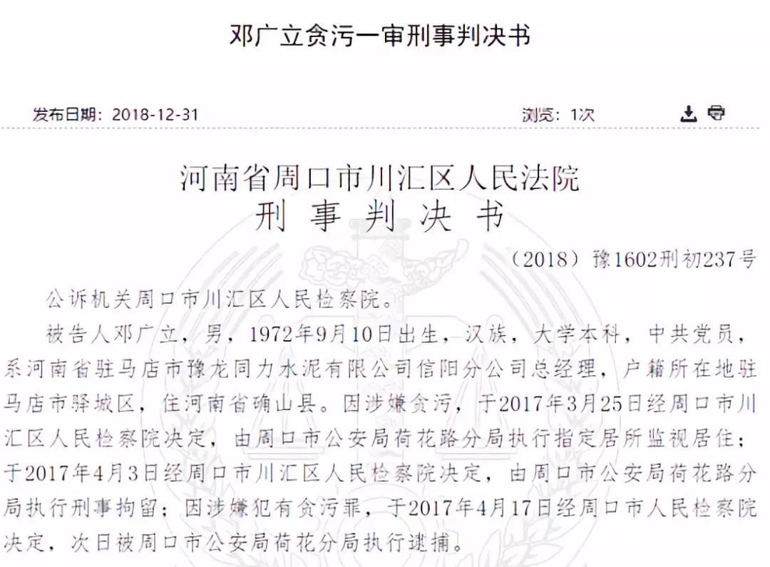 2017年3月25日,鄧廣立因涉嫌貪污,被指定居所監(jiān)視居住,2017年4月3日被刑事拘留。鄧廣立犯貪污罪,判處有期徒刑一年八個(gè)月,并處罰金人民幣十五萬元。非法所得12.78萬元應(yīng)當(dāng)予以追繳,上繳國庫。