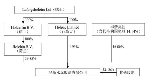 截至2018年9月30日,拉法基豪瑞集團旗下全資子公司Holchin.B.V.在公司的持股比例為 39.85%,其與一致行動人合計持股41.84%。以下為公司債券跟蹤評級報告(2018)中披露的股權結(jié)構(gòu)圖: