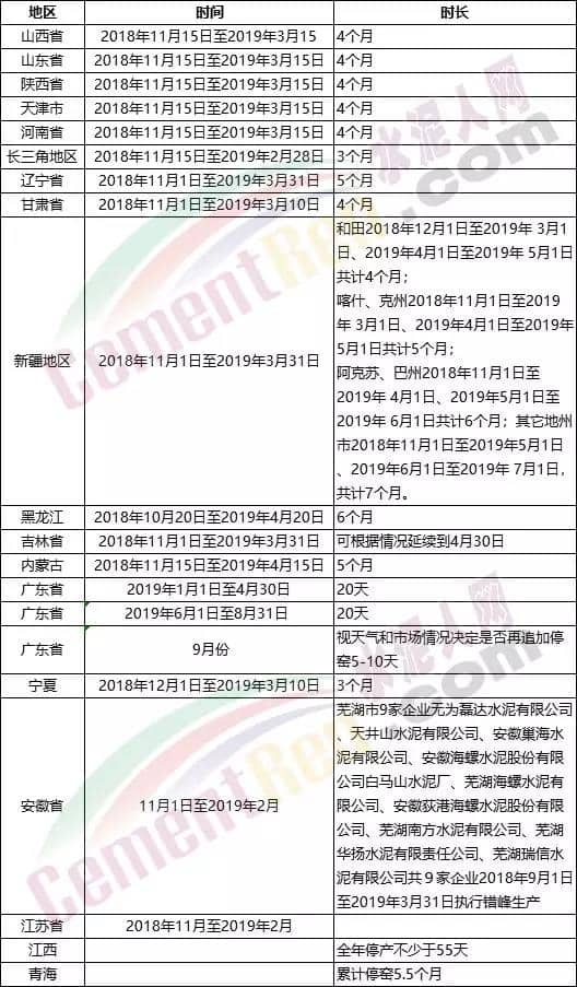水泥人網(wǎng)小編注意到2018年-2019年采暖季錯(cuò)峰停產(chǎn)還沒有結(jié)束,新的錯(cuò)峰停產(chǎn)計(jì)劃就發(fā)布了,是否停產(chǎn)天數(shù)包括重疊部分文件并沒有做詳細(xì)說明,如果包括重疊部分,那是否各省新的一年里錯(cuò)峰停產(chǎn)天數(shù)在減少。從另外一個(gè)角度看,從2019年3月15日開始,北方兩千多家水泥企業(yè)將進(jìn)入集體開窯的壯觀場面。
