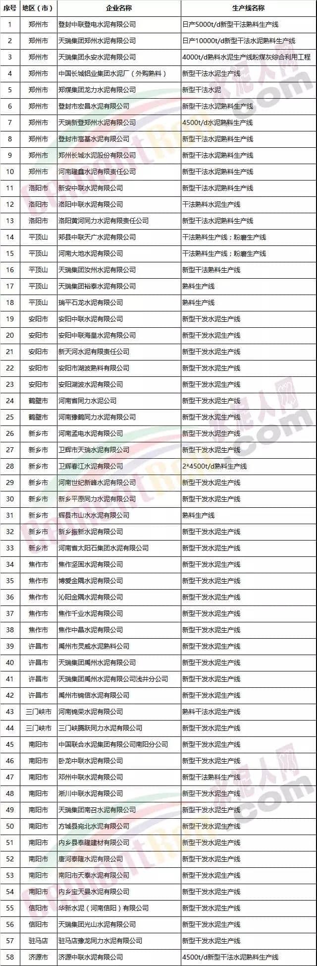 河南省部分水泥熟料企業(yè)名單
