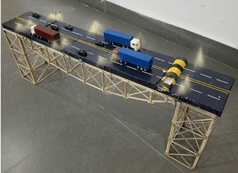 模擬了一種全新的道路概念。車輛行駛過程中的振動(dòng)能量通過路面的發(fā)電裝置轉(zhuǎn)化成電能,可用于道路設(shè)備供電、車況檢測(cè)。也可以在防止斷電的意外情況。