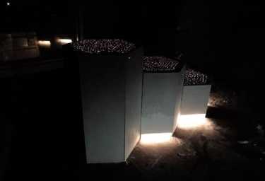 建筑材料不僅可以用來建高樓大廈,同樣也能成為別具創(chuàng)意的家居產(chǎn)品。第九組以清水混凝土、透光混凝土為原材料,做出了六面體狀的“水泥森林”,打破了傳統(tǒng)混凝土給人的刻板印象,讓我們知道,原來混凝土也可以巧妙地成為家庭擺件,在燈光的點(diǎn)綴下也能變得溫暖而柔和。