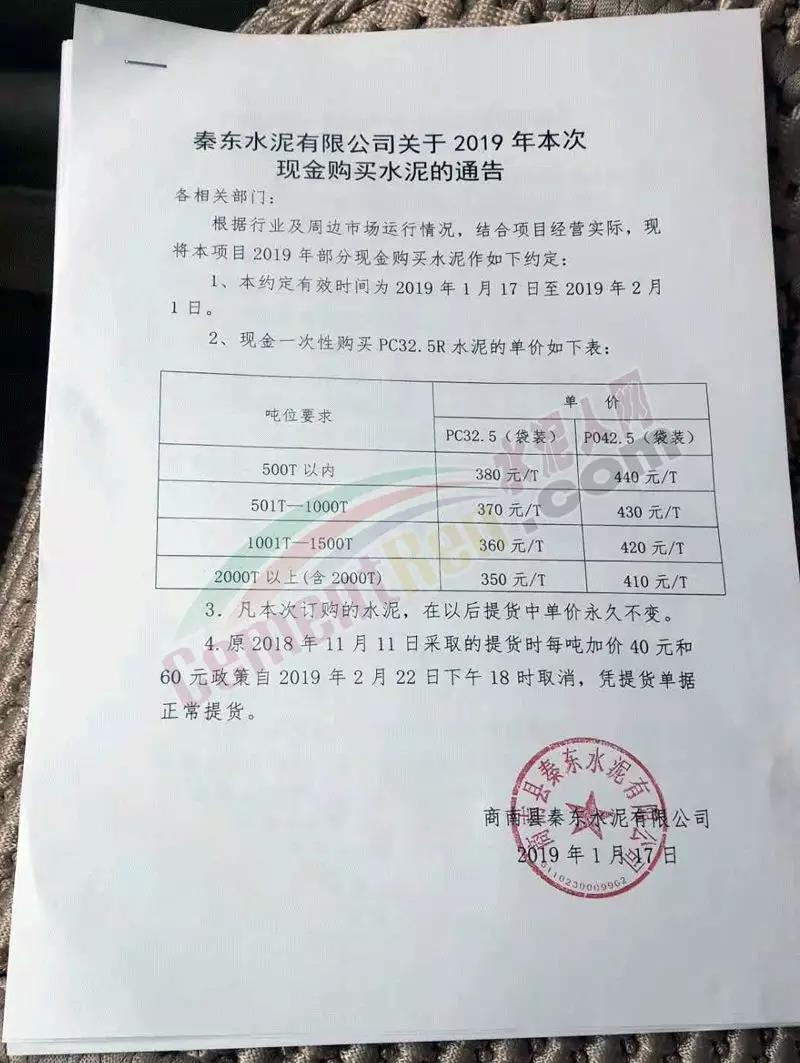 通告里還提到本次訂購(gòu)的水泥,在以后的提貨中單價(jià)永久不變。