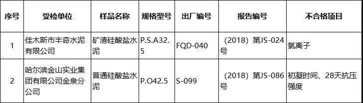 通過檢驗(yàn),佳木斯市豐奇水泥有限公司生產(chǎn)的礦渣硅酸鹽水泥的氯離子和哈爾濱金山實(shí)業(yè)集團(tuán)有限公司金泉分公司生產(chǎn)的普通硅酸鹽水泥的初凝時(shí)間、28天抗壓強(qiáng)度等指標(biāo),分別超出國(guó)家標(biāo)準(zhǔn)GB 175-2007《通用硅酸鹽水泥》中技術(shù)要求,判定為不合格(上述不合格產(chǎn)品具體情況詳見質(zhì)檢報(bào)告)。