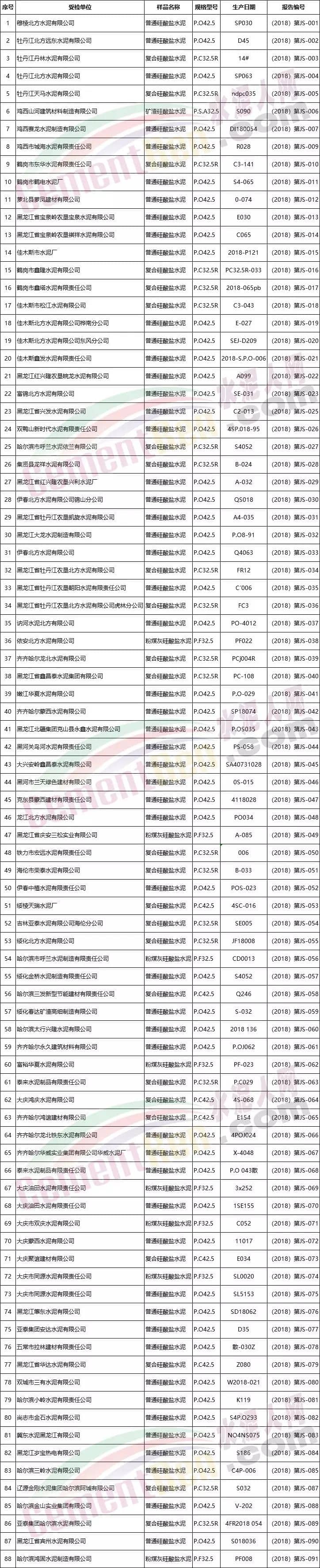水泥產(chǎn)品2018年省級(jí)監(jiān)督抽查