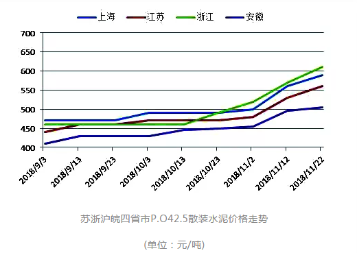 蘇浙滬皖四省市P.O42.5散裝水泥價格走勢