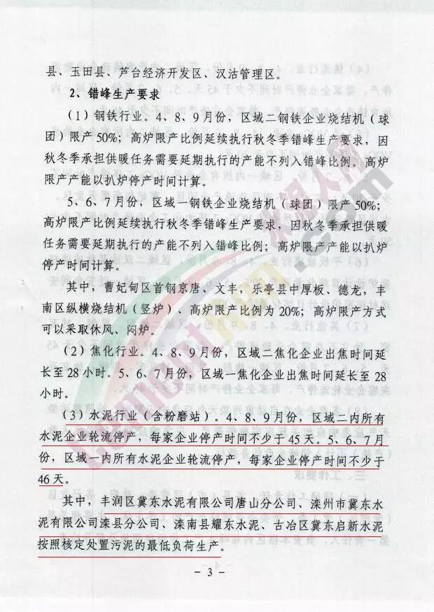 其中,豐潤區(qū)冀東水泥有限公司唐山分公司、灤州市冀東水泥有限公司灤縣 分公司、灤南縣耀東水泥、古冶區(qū)冀東啟新水泥按照核定處置污染的最低負(fù)荷生產(chǎn)。