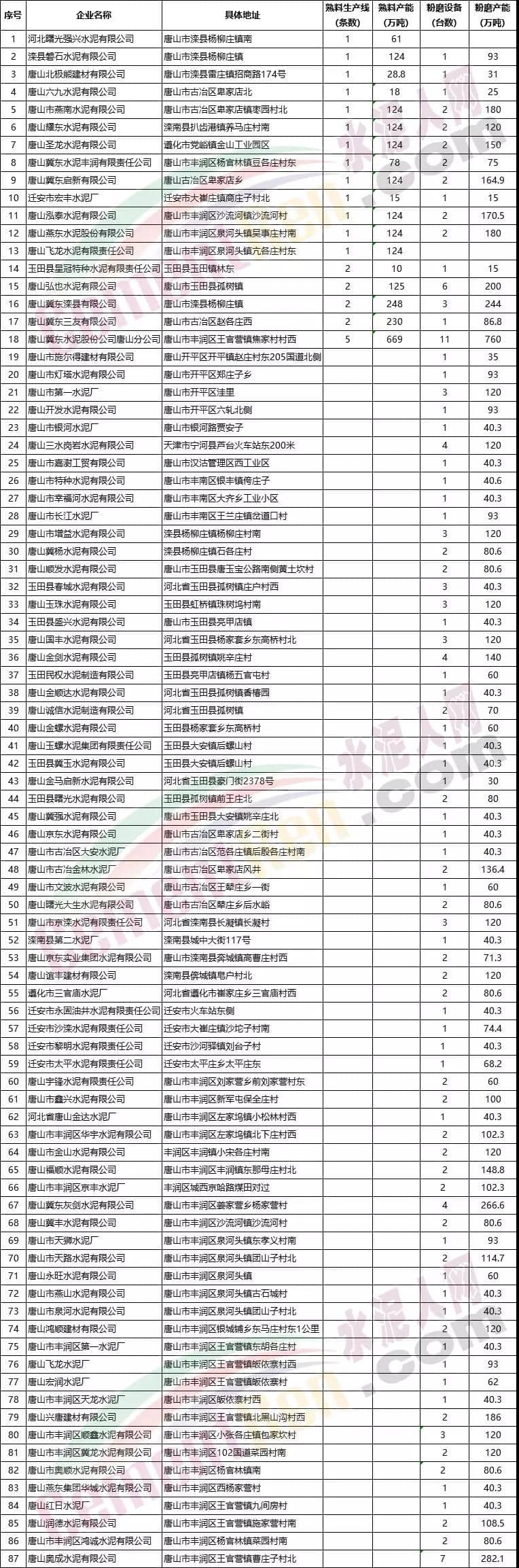 唐山市部分水泥企業(yè)名單