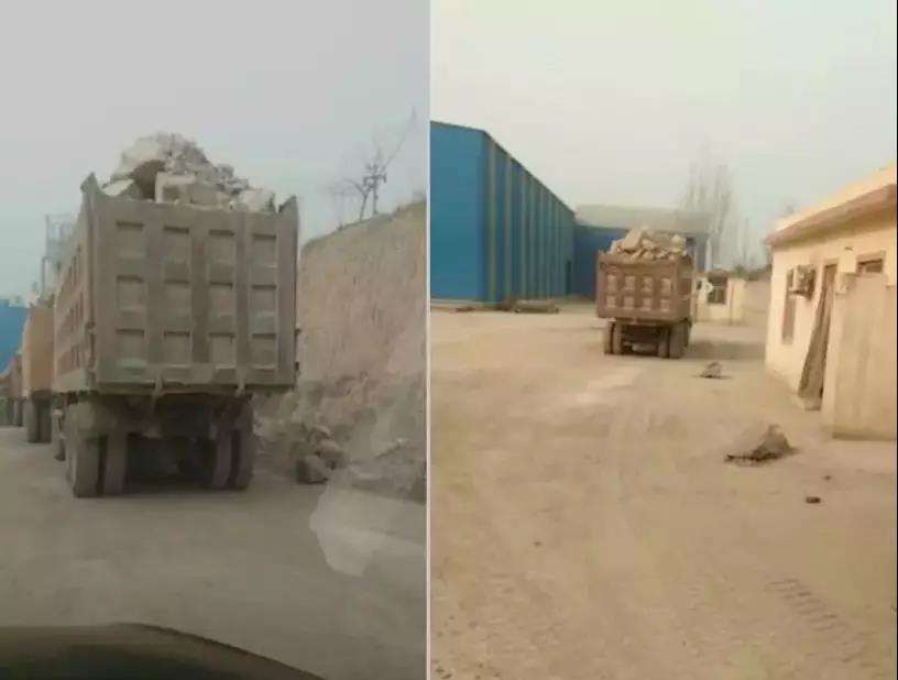可是山西中條山新型建材有限公司的后門卻是另一道"風(fēng)景"了,工廠后門,大約有七八輛貨車橫七豎八的停放在門口準(zhǔn)備進(jìn)廠運(yùn)送原料,全部車輛裝滿石頭,不蓋篷布,這些車輛既沒有牌照、還加高超載,貨廂上的石頭隨時(shí)有掉落的危險(xiǎn),對(duì)人身安全造成了嚴(yán)重的威脅。