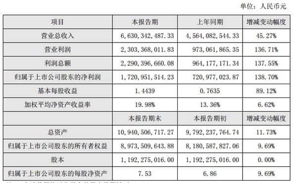 公司水泥銷售價(jià)格較上年同期上升了26.52%,受原材料價(jià)格上漲的影響,水泥銷售成本同比上升了6.13%,水泥銷售價(jià)格的上漲高于成本的上升使得綜合毛利率提高了10.78個(gè)百分點(diǎn)。受此疊加影響,報(bào)告期公司營(yíng)業(yè)利潤(rùn)、利潤(rùn)總額和歸屬于上市公司股東的凈利潤(rùn)實(shí)現(xiàn)了大幅度的增長(zhǎng),并使得報(bào)告期加權(quán)平均凈資產(chǎn)收益率同比上升了6.62個(gè)百分點(diǎn)。