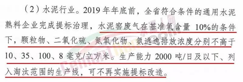文件要求的排污標(biāo)準(zhǔn)也較之前更高。方案要求對全省內(nèi)水泥熟料生產(chǎn)企業(yè)進(jìn)行提標(biāo)治理,在基準(zhǔn)氧含量10%條件下,水泥窯廢氣排放中顆粒物、二氧化硫、氮氧化物不得高于10毫克/立方米、35毫克/立方米、100毫克/立方米;每立方米氨逃逸濃度不得超過8毫克。