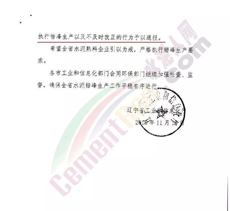 2018年11月10日遼寧省工信廳曾對(duì)大鷹水泥等企業(yè)未落實(shí)錯(cuò)峰生產(chǎn)相關(guān)要求企業(yè)做出公開(kāi)通報(bào),通報(bào)原文如下: