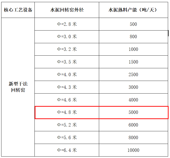 備注:1、對于變徑窯,按其最粗窯徑核定產能。2、窯徑在上表中兩檔之間的,按插值法推算其產能。