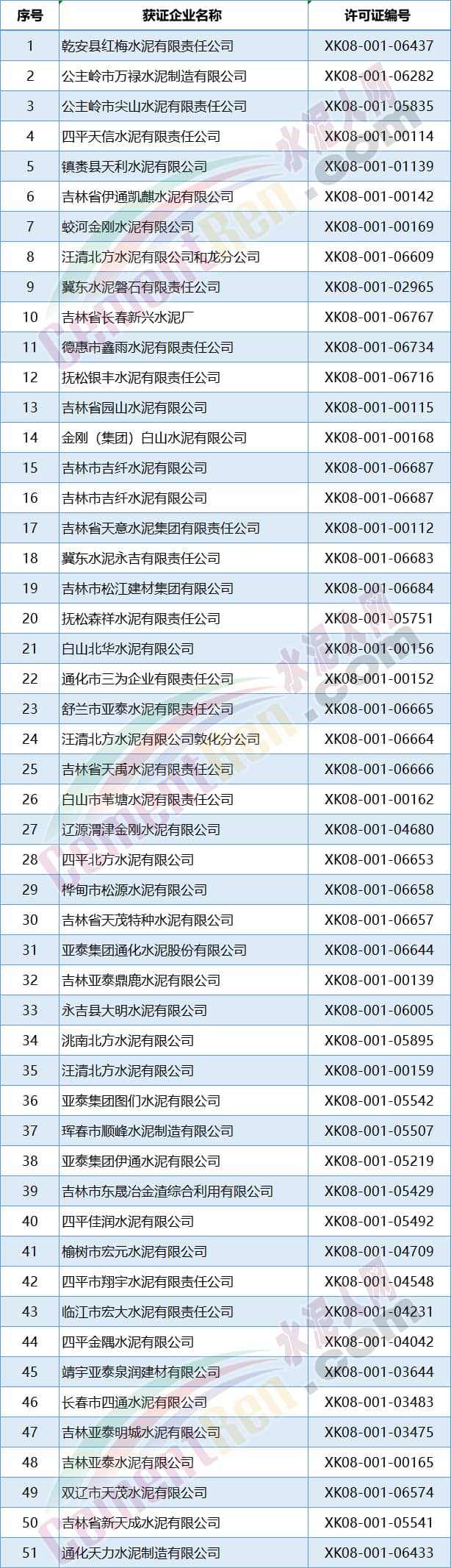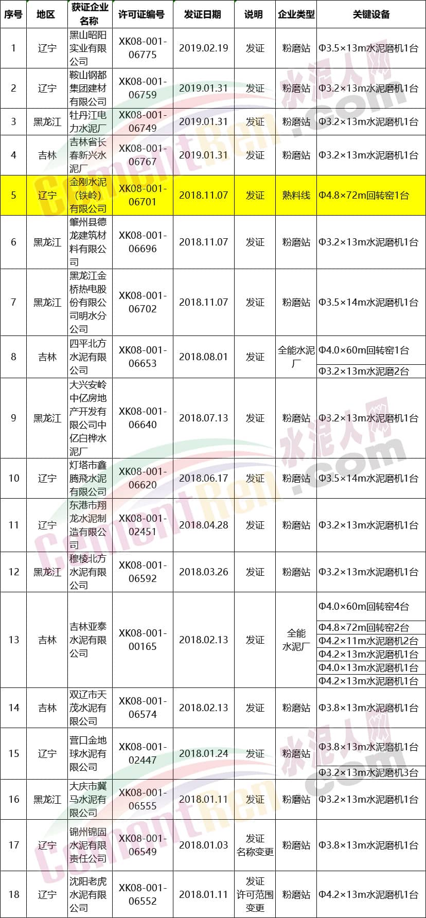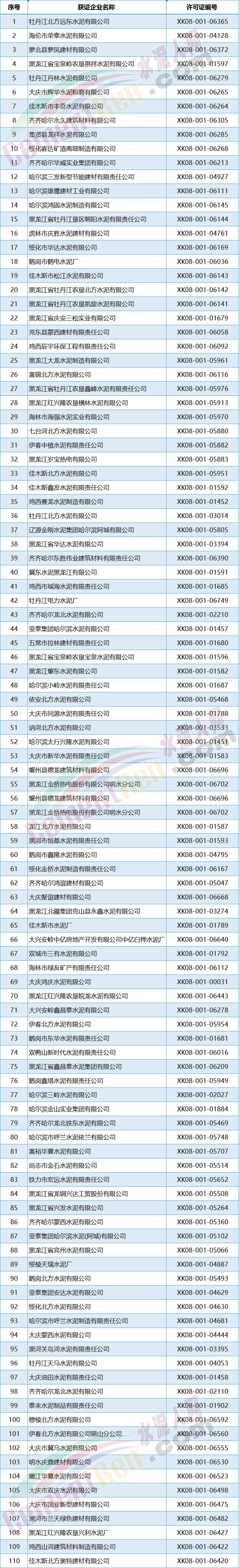 東北三省新發(fā)水泥企業(yè)生產許可證