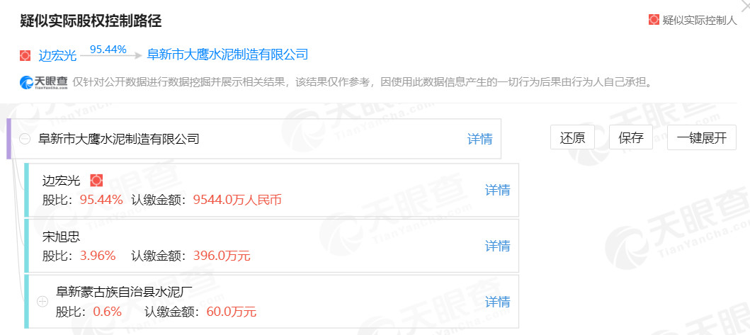 工商注冊信息顯示,阜新市大鷹水泥制造有限公司實際控制人為邊宏光。其在遼寧省內還有投資入股多條熟料生產線。