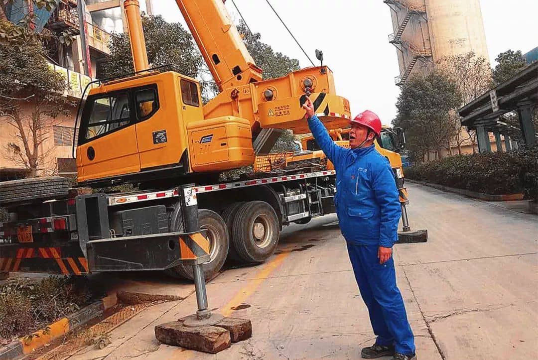 為嚴(yán)格執(zhí)行安全吊裝操作規(guī)程,老河口公司安全員正在現(xiàn)場指揮試吊,檢查全部機(jī)械受力情況。