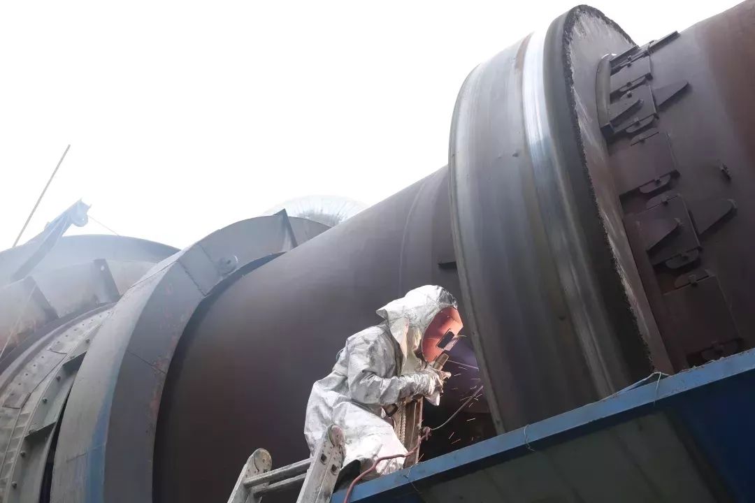 錯(cuò)峰生產(chǎn)對(duì)生產(chǎn)組織提出了更高要求,尤其是回轉(zhuǎn)窯,窯磚全部更換,必須檢查徹底。宜城公司檢修人員正在對(duì)窯內(nèi)“污垢”進(jìn)行清理。