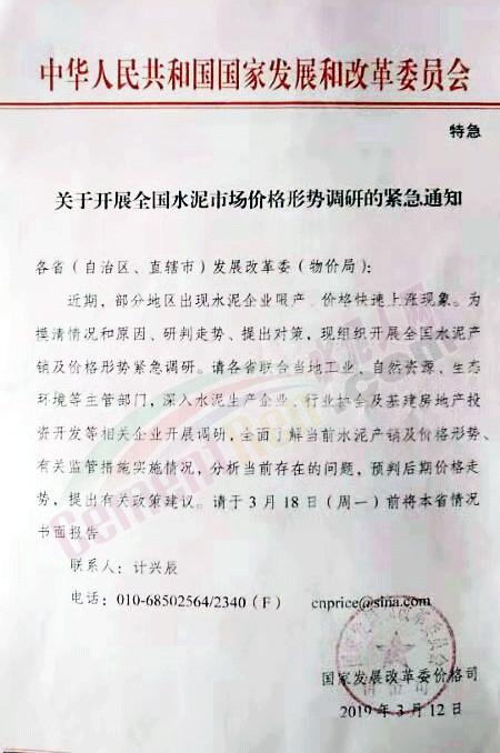 水泥人網(wǎng)最新消息,日前國家發(fā)改委發(fā)布特急文件《關(guān)于開展全國水泥市場價格形勢調(diào)研的緊急通知》。通知稱,近期部分地區(qū)出現(xiàn)水泥企業(yè)限產(chǎn),價格快速上漲現(xiàn)象。為摸清情況和原因、研判走勢、提出對策、現(xiàn)組織開展全國水泥產(chǎn)銷及價格形勢緊急調(diào)研。