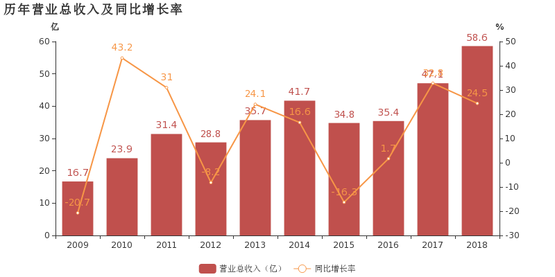 皖維高新于2019年3月26日披露年報,公司2018年實現(xiàn)營業(yè)總收入58.6億,同比增長24.5%;實現(xiàn)歸屬于母公司所有者的凈利潤1.3億,同比增長52.6%;每股收益為0.07元。報告期內(nèi),公司毛利率為16.5%,較上年提高0.7個百分點,凈利率為2.2%,基本維持上年水平。