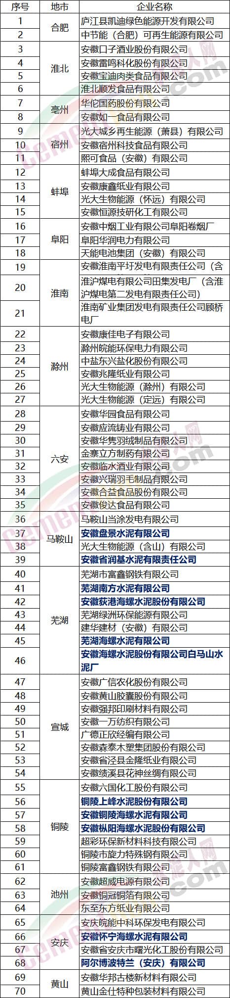 日前,水泥人網(wǎng)自安徽省經(jīng)濟和信息化廳了解到共有70家企業(yè)被評為2018年度省級節(jié)水型企業(yè)。其中水泥行業(yè)安徽荻港海螺水泥股份有限公司、蕪湖海螺水泥有限公司、安徽海螺水泥股份有限公司白馬山水泥廠、安徽銅陵海螺水泥有限公司、安徽樅陽海螺水泥股份有限公司、安徽懷寧海螺水泥有限公司及安徽盤景水泥有限公司、安徽省潤基水泥有限責任公司、銅陵上峰水泥股份有限公司、阿爾博波特蘭(安慶)有限公司也榜上有名。 安徽省經(jīng)濟和信息化廳名單公示原文如下: