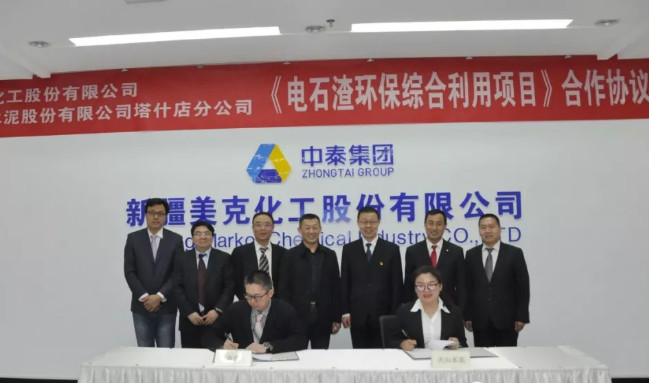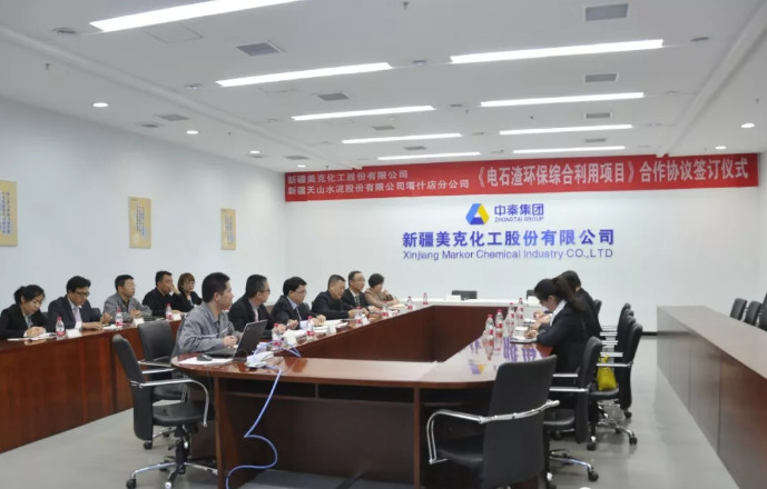 座談結(jié)束后,隨后雙方舉行合作協(xié)議簽訂儀式?!峨娛h(huán)保綜合利用項(xiàng)目》是由美克化工全額投資對(duì)塔什店天山水泥公司熟料生產(chǎn)線進(jìn)行技術(shù)改造,由天山水泥提供建設(shè)場(chǎng)地,項(xiàng)目建成后美克化工將合格電石渣免費(fèi)拉運(yùn)至天山水泥廠區(qū)內(nèi),項(xiàng)目建成后可消耗美克化工生產(chǎn)過程產(chǎn)生的全部電石渣,變工業(yè)廢渣為建筑資源,節(jié)約資源、能源,變廢為寶,符合國(guó)家節(jié)能降耗、發(fā)展循環(huán)經(jīng)濟(jì)的產(chǎn)業(yè)政策,符合國(guó)家節(jié)約土地政策和有關(guān)環(huán)境保護(hù)新規(guī)定。