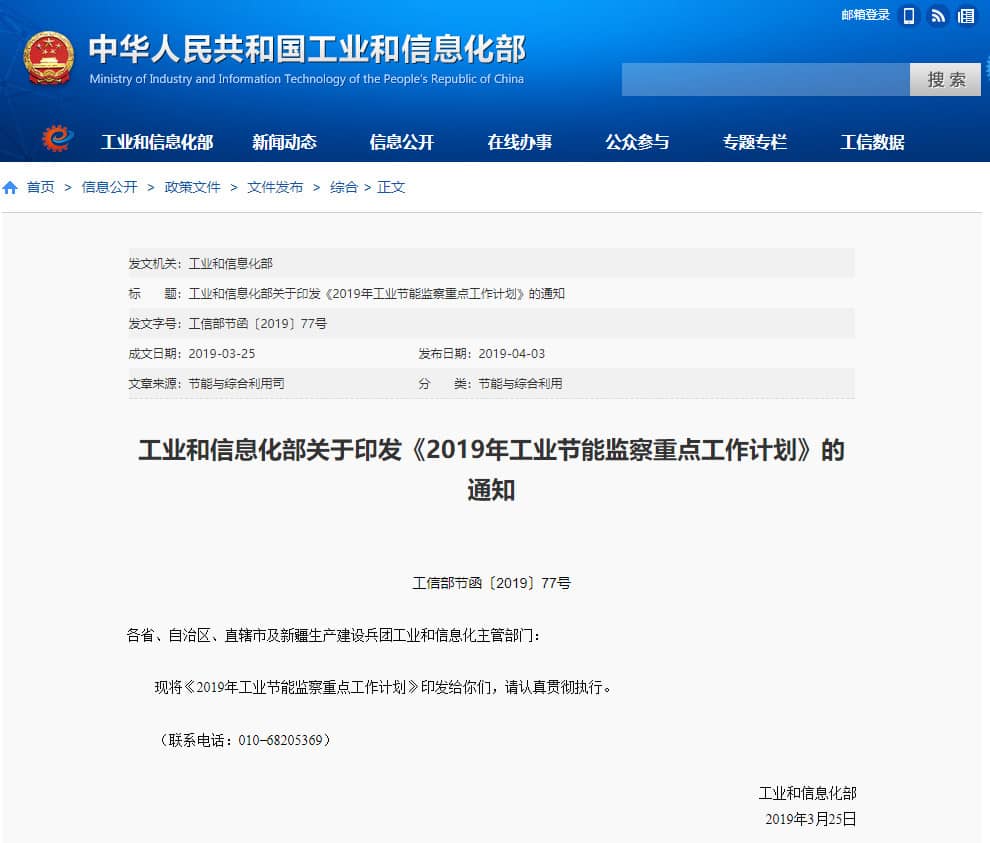 2019年工業(yè)節(jié)能監(jiān)察重點工作計劃