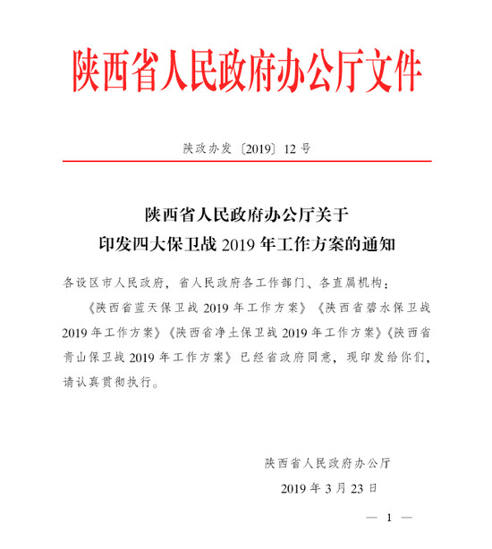 陜西省藍天保衛(wèi)戰(zhàn)2019年工作方案