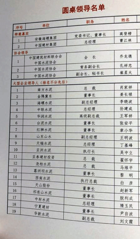 出席峰會(huì)的有19家大型水泥企業(yè)領(lǐng)導(dǎo)人為