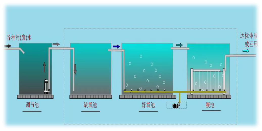 “集裝箱”的研發(fā)主要針對(duì)城鎮(zhèn)鄉(xiāng)村、住宅小區(qū)、醫(yī)院、食品加工、屠宰廢水等,因此在工藝選擇上,通常采用A2O(A/O)+MBR工藝,A2/O的智能化集成式污(廢)水處理設(shè)備(ZIWT)可實(shí)現(xiàn)同步脫氮除磷。