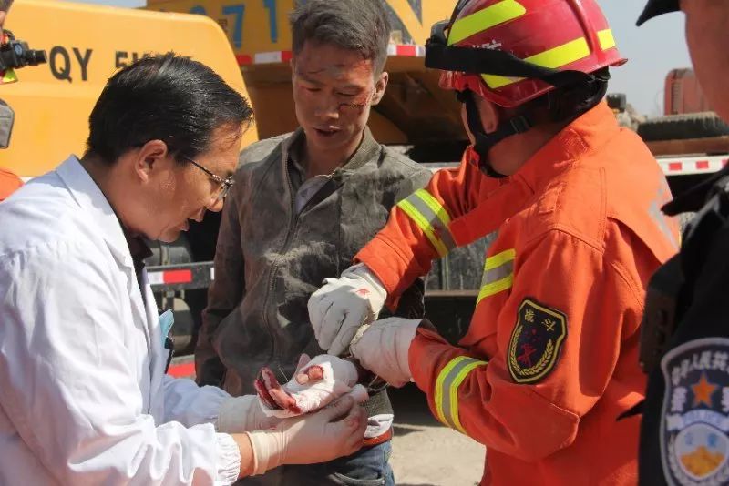 9時(shí)45分,消防救援人員到達(dá)事故現(xiàn)場(chǎng),經(jīng)現(xiàn)場(chǎng)詢(xún)問(wèn)得知:一臺(tái)挖掘機(jī)在對(duì)房屋進(jìn)行拆除時(shí)突然發(fā)生墻體倒塌,導(dǎo)致駕駛員被埋壓,指揮員根據(jù)現(xiàn)場(chǎng)情況,立即協(xié)調(diào)吊車(chē)對(duì)倒塌墻體進(jìn)行起吊。