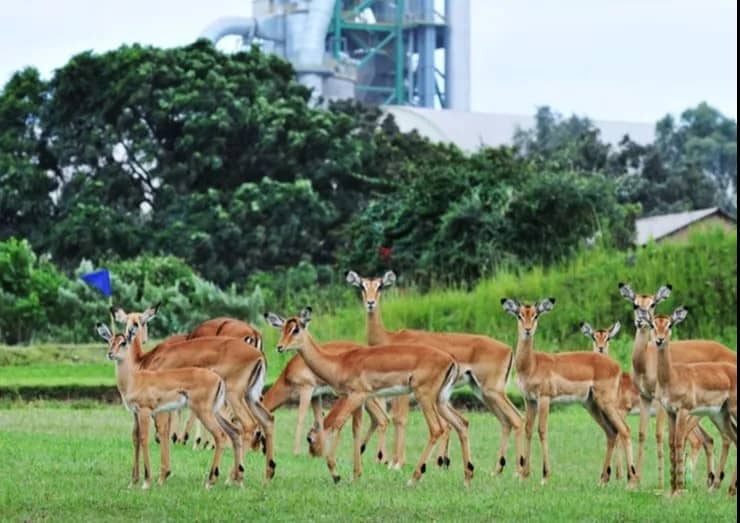 拉豪旗下Bamburi 水泥有限公司礦山,在肯尼亞蒙巴薩的南部,48年前還是荒蕪的荒地,現(xiàn)在周圍環(huán)繞著野生動(dòng)物保護(hù)區(qū),青翠的森林和草原,鳥類,動(dòng)物,昆蟲和植物的棲息地。