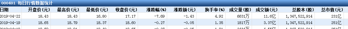 不僅如此,上市公司水泥板塊一天蒸發(fā)250多億。其中“賺錢(qián)王”海螺水泥市值蒸發(fā)99億,冀東水泥市值蒸發(fā)20億。