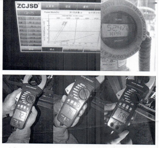 2018年11月16日,雙方相關人員再次測試數(shù)據(jù)為壓力52.84Kpa,功率為45.8kw,實測電流為72.9A,68.6A,66.2A,與10月22日測數(shù)據(jù)相差無幾。