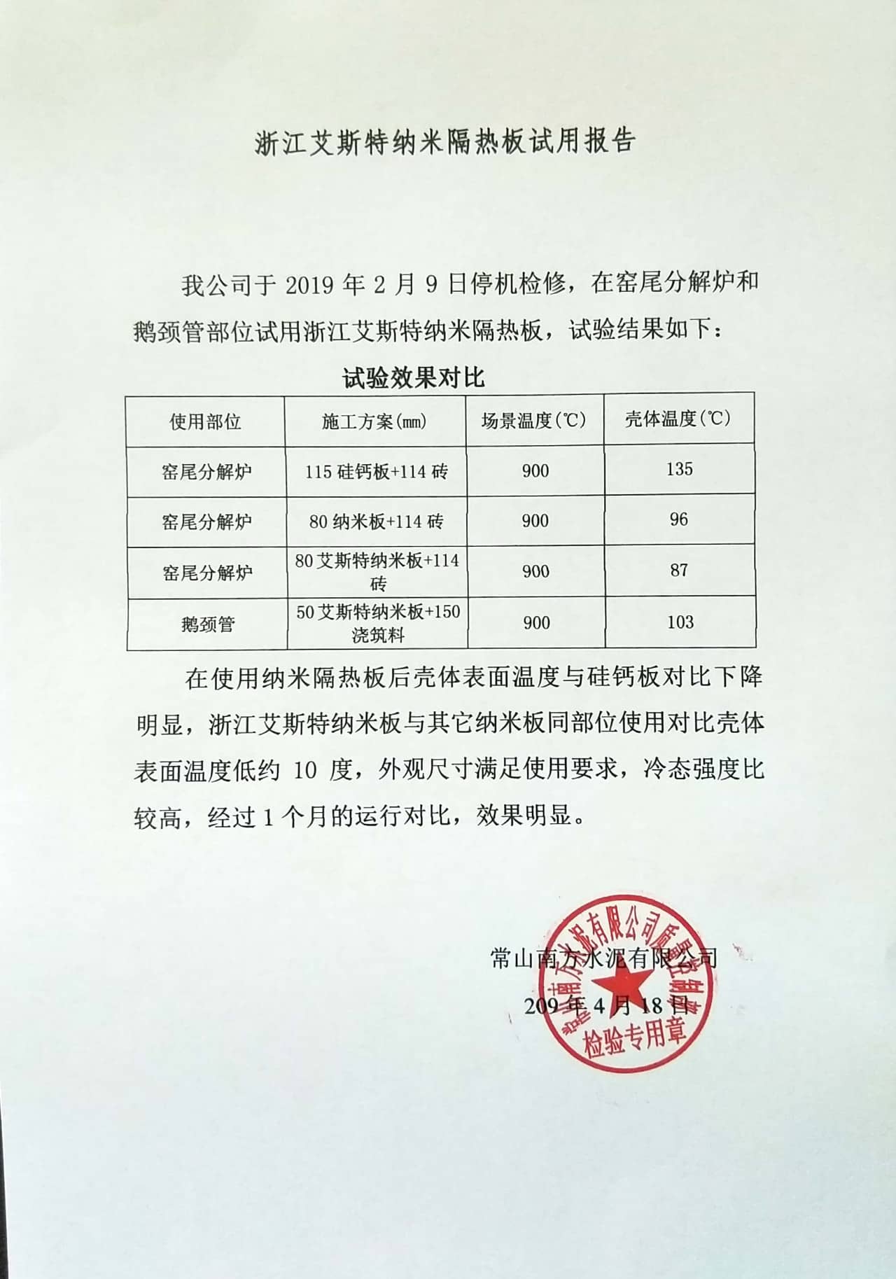 2018年以來,艾斯特納米隔熱材料在南方水泥和華新水泥等大型水泥集團(tuán)逐步推廣應(yīng)用,已得到客戶越來越多的肯定。納米隔熱材料的使用,給客戶帶來了非??捎^的經(jīng)濟(jì)效益。以浙江南方區(qū)域某水泥公司為例,使用效果和收益如下: