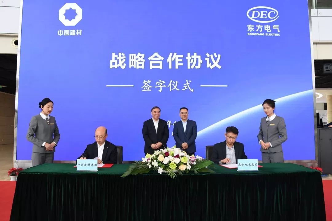 中國(guó)建材集團(tuán)黨委常委、副總經(jīng)理常張利和東方電氣集團(tuán)黨組成員、總會(huì)計(jì)師白勇分別代表雙方簽署戰(zhàn)略合作協(xié)議。東方電氣集團(tuán)黨組成員、副總經(jīng)理徐鵬主持簽字儀式。