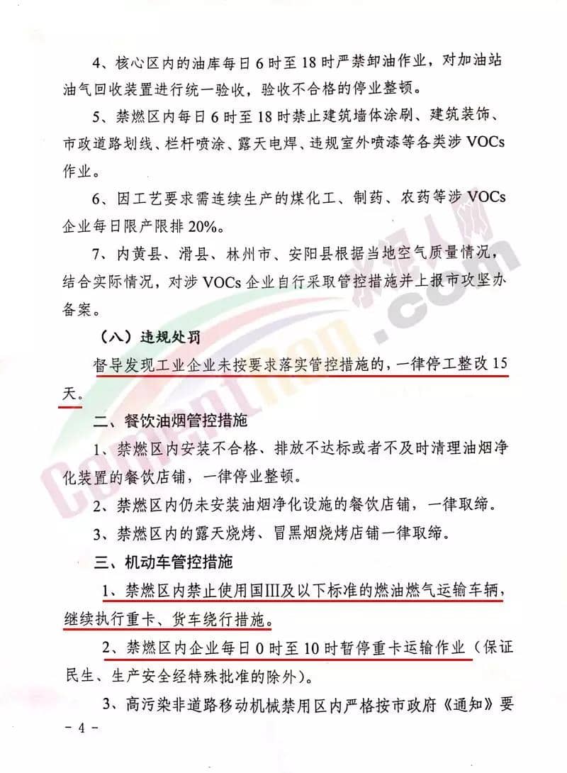 機動車管理措施方面要求禁燃區(qū)內(nèi)禁止使用國III及以下標準的燃油燃氣運輸車輛 ,繼續(xù)執(zhí)行重卡、貨車繞行措施。禁燃區(qū)內(nèi)企業(yè)每日0時至10時暫停重卡運輸作業(yè)。同時開展專項整治行動,打擊未辦理運輸核準手續(xù)從事運輸活動的“黑渣土車”,尤其對外地牌號、荷載量較大的“前四后八”等違規(guī)車輛 要“發(fā)現(xiàn)一輛、滯留一輛、處罰一輛”,對報廢、拼裝渣土車予以罰款,收繳車輛,強制報廢,對機動車駕駛?cè)艘婪ㄓ枰試缿?,不斷凈化渣土清運市場管理秩序。文件原文如下: