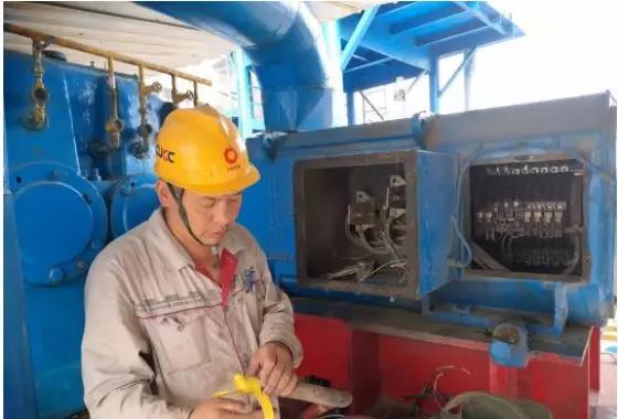 機(jī)電車間電氣維修工李兵正在對1號窯主電機(jī)進(jìn)行仔細(xì)檢查。