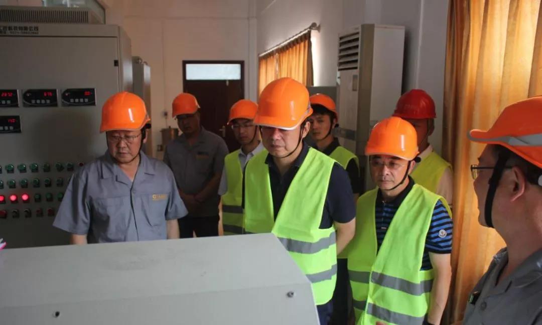 董事長李泉侑陪同客人參觀智能化配料系統(tǒng)和生產(chǎn)車間