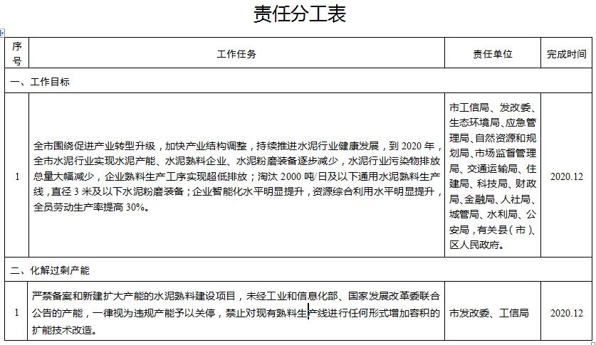 (一)明確工作責任。各縣(市、區(qū))政府、有關(guān)部門要充分認識到貫徹落實省水泥行業(yè)轉(zhuǎn)型發(fā)展行動方案的重要性和緊迫性,積極協(xié)作配合共同完成方案確定的各項工作任務(wù)。各縣(市)、區(qū)政府對本地水泥行業(yè)轉(zhuǎn)型發(fā)展工作負總責,加強組織領(lǐng)導,結(jié)合本地實際,貫徹落實水泥行業(yè)轉(zhuǎn)型發(fā)展行動方案有關(guān)任務(wù)舉措。水泥企業(yè)是實施轉(zhuǎn)型發(fā)展的責任主體,要嚴格依法依規(guī)化解過剩產(chǎn)能、推進兼并重組、實施綠色化轉(zhuǎn)型。市工業(yè)和信息化局、發(fā)展和改革委員會、生態(tài)環(huán)境局、市場監(jiān)督管理局、自然資源和規(guī)劃局等部門要根據(jù)職責分工,加強指導,完善相關(guān)政策措施。