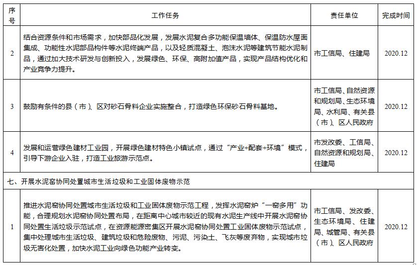 (六)開展水泥窯協(xié)同處置城市生活垃圾和工業(yè)固體廢物示范。推進水泥窯協(xié)同處置城市生活垃圾和工業(yè)固體廢物示范工程,發(fā)揮水泥窯爐“一窯多用”功能,合理規(guī)劃水泥窯協(xié)同處置布局,在距離中心城市較近的現(xiàn)有水泥生產(chǎn)線中開展水泥窯協(xié)同處置生活垃圾示范試點,在資源能源密集區(qū)開展水泥窯協(xié)同處置工業(yè)固體廢物示范試點,集中處理城市生活垃圾、建筑垃圾和危險廢物、污泥、污染土、飛灰等廢棄物,實現(xiàn)城市垃圾無害化處置,加快水泥工業(yè)向綠色功能產(chǎn)業(yè)轉(zhuǎn)變。鼓勵企業(yè)與高校、科研院所開展技術(shù)合作,研發(fā)水泥窯協(xié)同處置核心裝備,推廣“中信重工裝備+黃河同力運營”模式,對協(xié)同處置試點示范項目給予重點支持。對承擔居民供暖、協(xié)同處置城市生活垃圾或工業(yè)固體廢物生產(chǎn)線的企業(yè),不再實施錯峰生產(chǎn)。