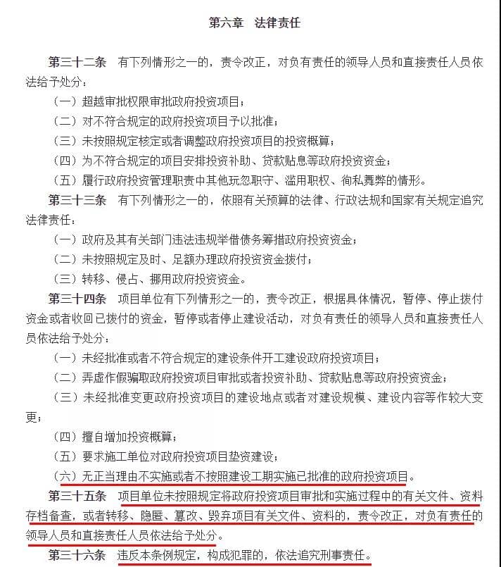 4、要求施工單位對政府投資項目墊資建設、無正當理由不實施或者不按照建設工期實施已批準的政府投資項目,對負有責任的領導人員和直接責任人員依法給予處分。