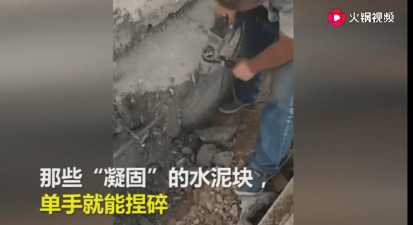 7月9日,鹿邑縣志成實(shí)驗(yàn)學(xué)校校長(zhǎng)張光啟對(duì)記者出示了工人清除問(wèn)題水泥時(shí)的視頻。那些“凝固”的水泥塊,單手就能捏碎。為了把那些劣質(zhì)水泥清除干凈,“后期工人們是用手一塊一塊把水泥摳下來(lái)的”。