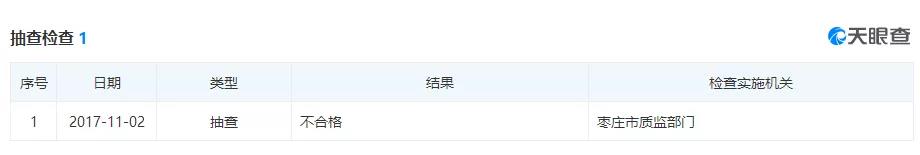 2017年11月棗莊市質(zhì)監(jiān)部門(mén)抽查結(jié)果為不合格