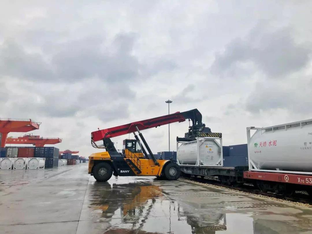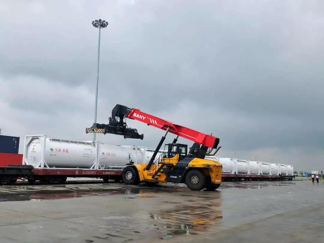 400個裝運散裝水泥的定制罐式集裝箱陸續(xù)到達廠區(qū)