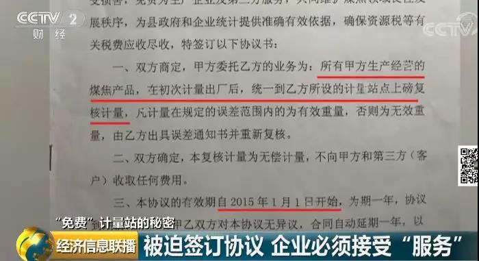 記者看到一份由礦廠與“安澤縣礦區(qū)稱重公正計量站”簽訂的“公正計量委托協(xié)議書”,協(xié)議上說明,從2015年1月1日開始,礦上的出廠煤都要由計量站進(jìn)行免費(fèi)計量,如果沒有異議,協(xié)議就無限期延長下去。