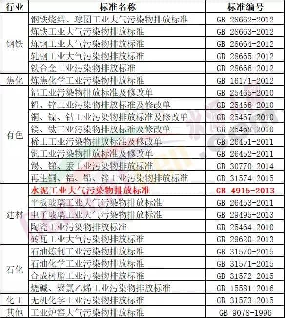 現(xiàn)有涉工業(yè)爐窯行業(yè)大氣污染物排放標(biāo)準(zhǔn)